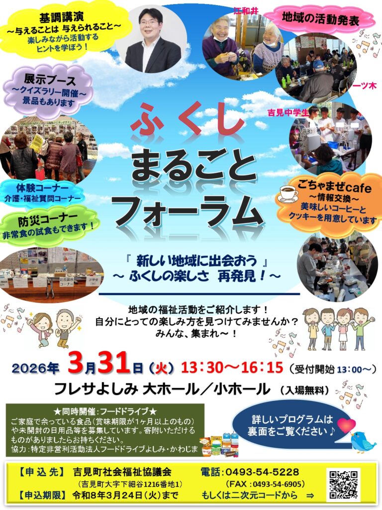 地域の様々な福祉活動を皆様と共有し、その活動の輪をひろげていくためにフォーラムを開催します。